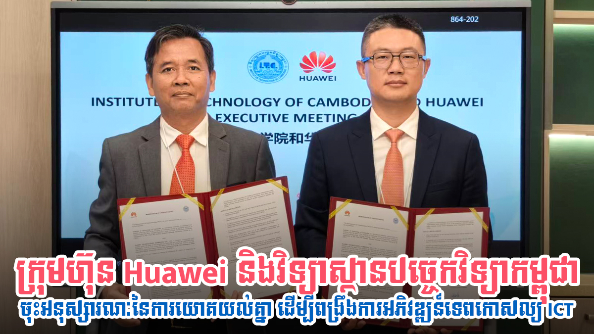 ក្រុមហ៊ុន Huawei ​និង​វិទ្យា​ស្ថាន​បច្ចេក​វិទ្យា​កម្ពុជា​ ចុះ​អនុ​ស្សារណៈ​នៃ​ការ​យោគ​យល់​គ្នា ​ដើម្បី​ពង្រឹង​ការ​អភិវឌ្ឍន៍​ទេព​កោសល្យ ICT