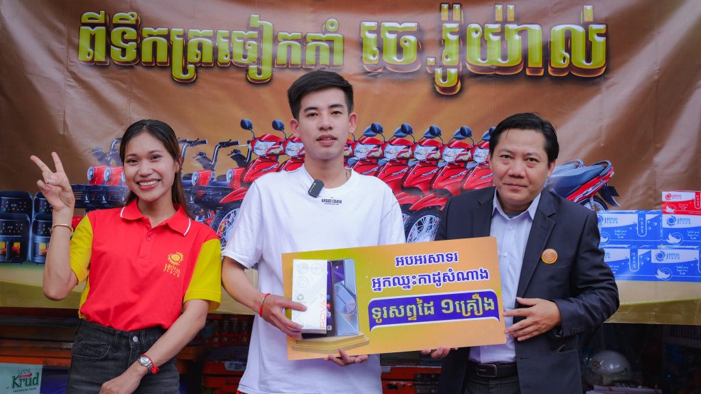 លោក ស៊ឹម សុភ័ក្រ​ ប្រធាន​ផ្នែក​ប្រតិ​បត្តិការ​ក្រុមហ៊ុន​ទឹក​ត្រចៀកកាំ ​ចេ.រ៉ូយ៉ាល់ ​មាន​ប្រសាសន៍បញ្ជាក់​ថា​ អតិ​ថិជន​​ដែល​ទិញ​ទឹក​ត្រចៀក​កាំ ​ចេ.រ៉ូយ៉ាល់ ​ចាប់​ពី​១យួរ​ នឹង​ទទួល​បាន​សន្លឹក​ប័ណ្ណ១សន្លឹក​ ដើម្បី​ផ្សង​សំណាង​ ដោយ​ត្រូវ​បំពេញ​ព័ត៌​មាន​ និង​ថត​សន្លឹក​ប័ណ្ណ​ផ្ញើ​ចូល​ហ្វេស​ប៊ុក​ផេក​ទឹក​ត្រចៀក​កាំ ចេ.រ៉ូយ៉ាល់។​