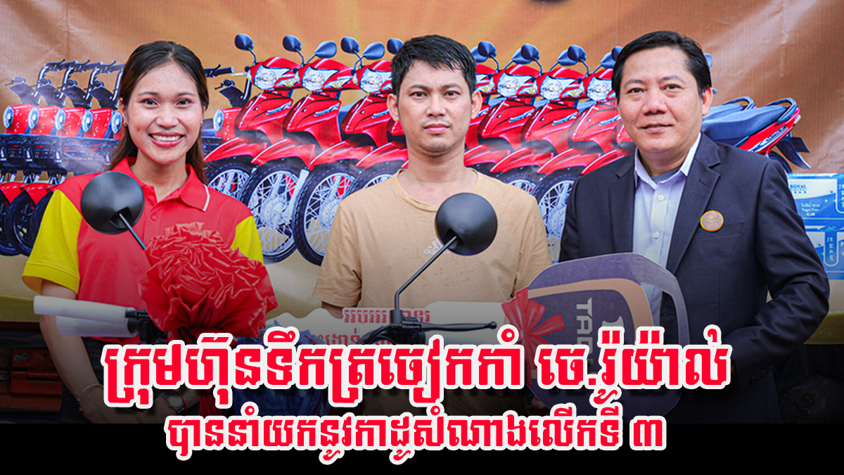 ក្រុមហ៊ុនទឹក​ត្រចៀក​កាំ ​ចេ.រ៉ូយ៉ាល់ ​បាន​នាំ​យក​នូវ​កា​ដូ​សំណាង​លើក​ទី៣ ​ជូន​ដល់​អតិថិជន​របស់ខ្លួនដល់​គេហដ្ឋាន។