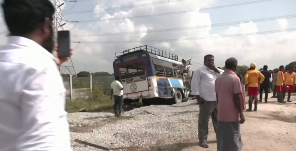 ​អា​ជ្ញា​ធរ​មូល​ដ្ឋាន​បាន​និ​យាយ​ថា​ ​រថ​យន្ត​ដឹក​ទំ​និញ​មួយ​គ្រឿង​ដែល​ផ្ទុក​ទៅ​ដោយ​ដុំ​ថ្ម​បេ​តុង​តូច​ៗ​ ​បាន​ជួប​គ្រោះ​ថ្នាក់​ជា​មួយ​រថ​យន្ត​ក្រុង​ដឹក​​អ្នក​ដំណើរ​ ​នៅ​ភាគ​ខាង​ត្បូង​​ឥណ្ឌា​ ​នា​ព្រឹក​ព្រ​លឹម​ថ្ងៃ​ចន្ទ​ ​(៣​ ​វិច្ឆិកា​)​ ​នេះ​ ​ដោយ​បាន​សម្លាប់​មនុស្ស​យ៉ាង​ហោច​ណាស់​ ​២០​នាក់​ ​និង​មនុស្ស​មួយ​ចំនួន​ទៀត​រងរ​បួស​។​
