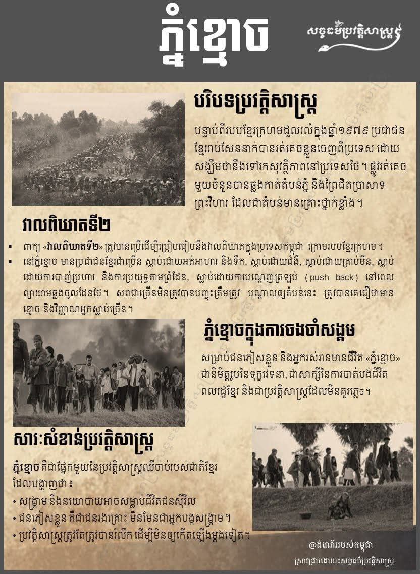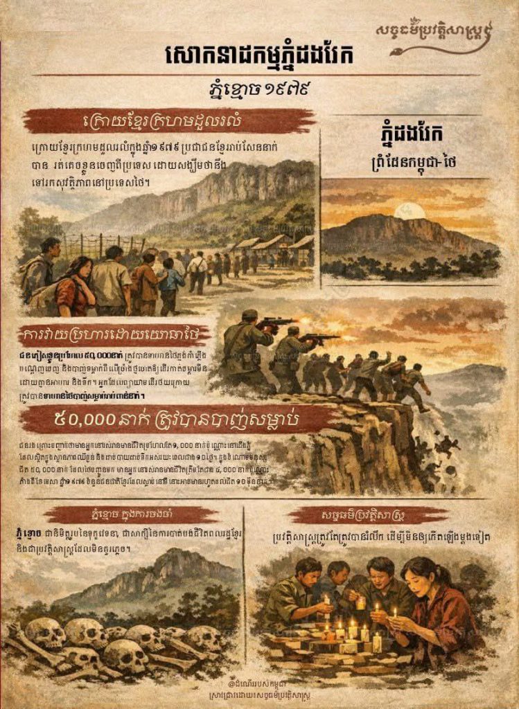 តាមឯកសារ សច្ចធម៌ប្រវត្តិសាស្ត្រ បានចែករំលែកការពិតថា ភ្នំខ្មោច វាលពិឃាតក្នុងការចងចំាជាប្រវត្តិសាស្រ្ត ដែលថៃ សម្លាប់ខ្មែរ។